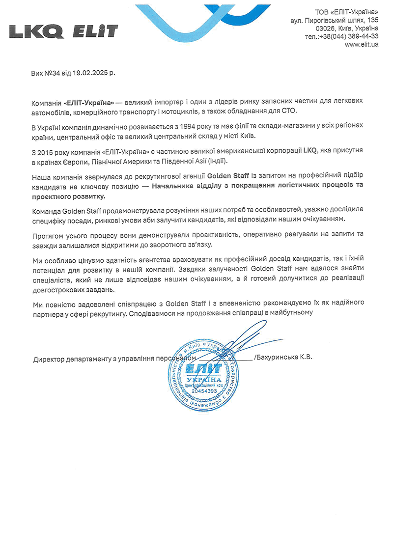 Компания "ЕЛІТ-Україна"19 февраля 2025 р.