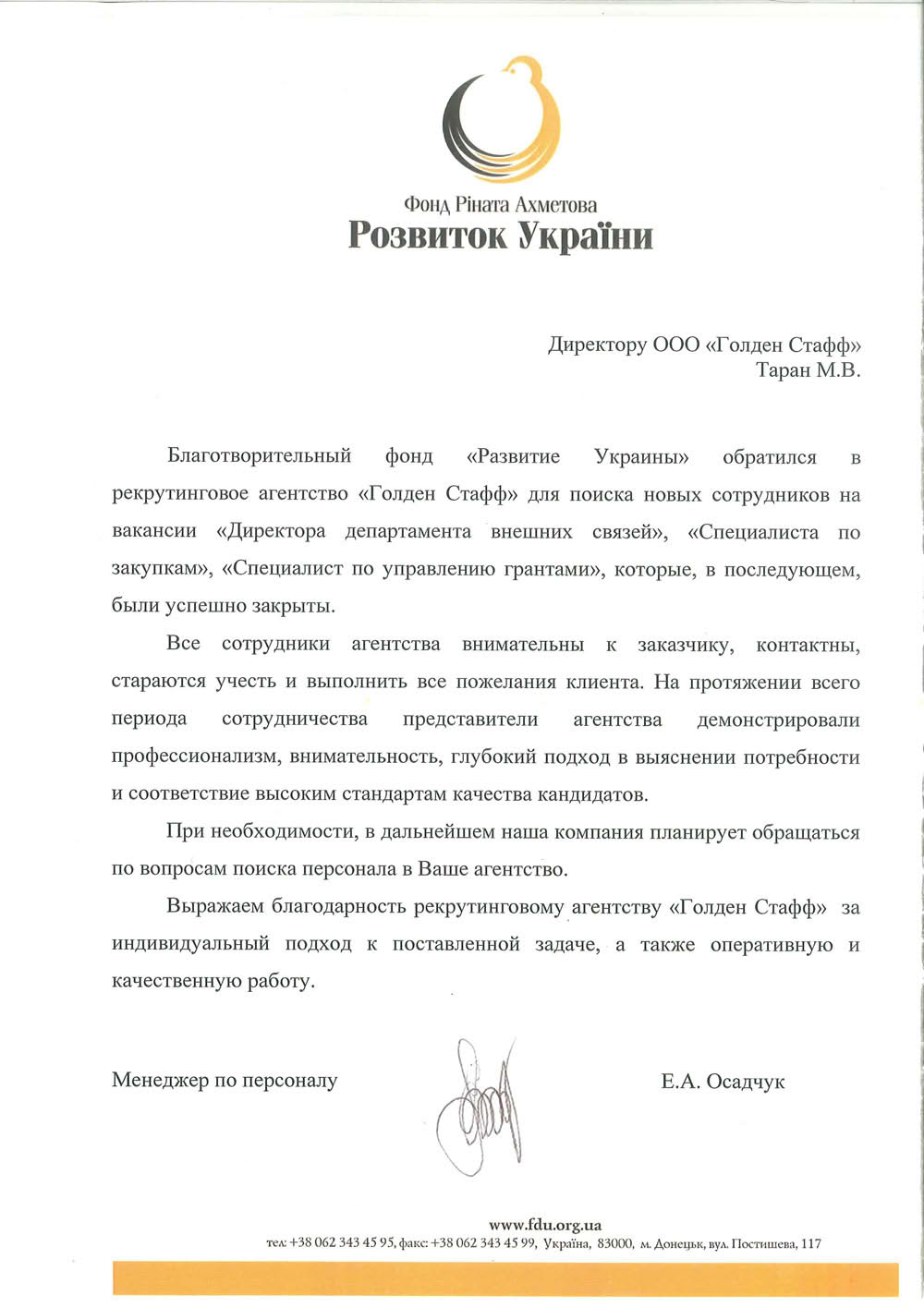 Фонд Ріната Ахметова «Розвиток України»Усі співробітники агентства уважні до замовника, контактні, прагнуть врахувати та виконати всі побажання клієнта. Протягом усього періоду співробітництва представники агентства демонстрували професіоналізм, уважність, глибокий підхід у з'ясуванні потреб клієнта та відповідність високим стандартам якості роботи.