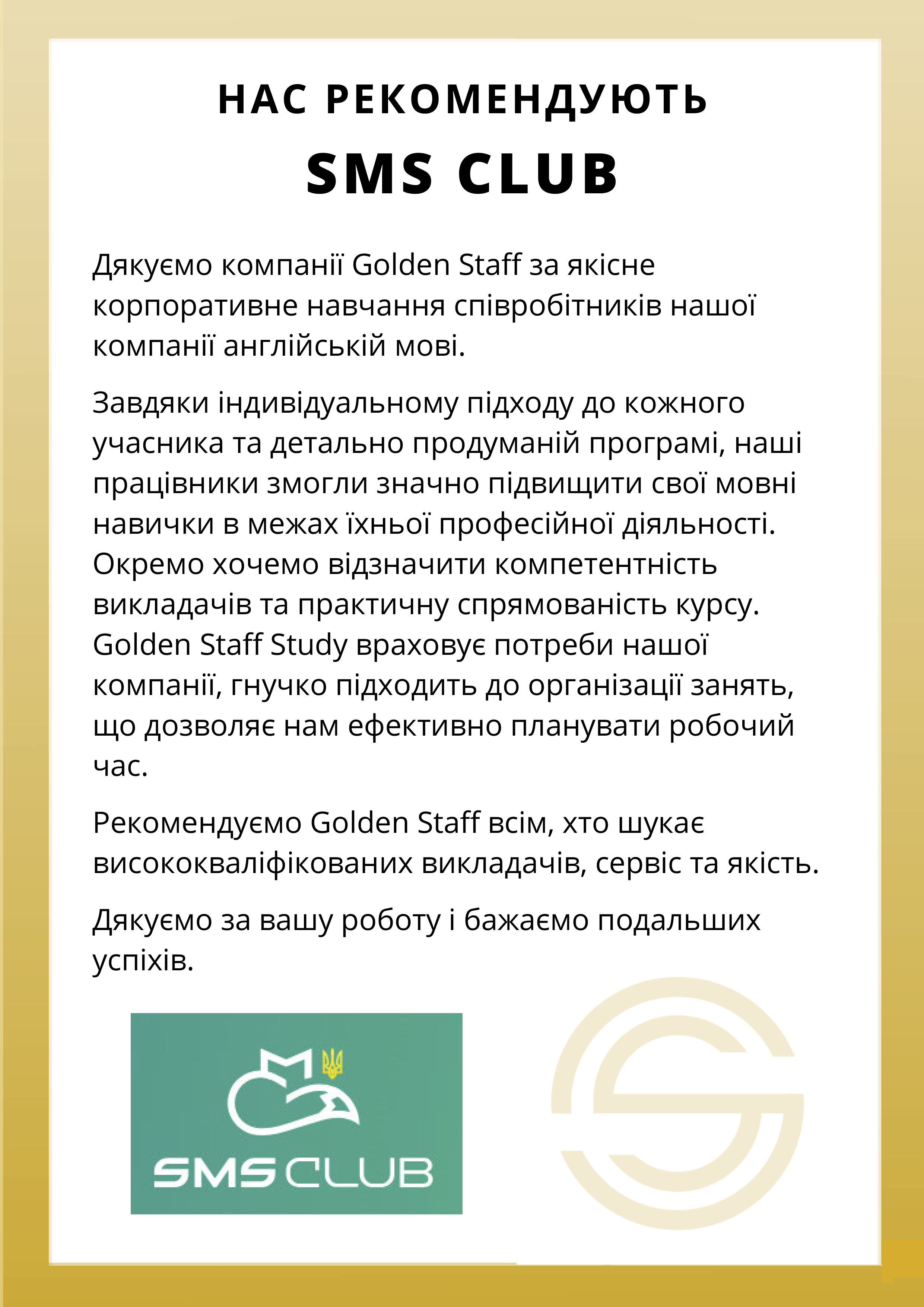 Наша компанія мала чудовий досвід співпраці з Golden Staff Study у рамках корпоративного навчання англійської мови. Високий рівень викладання, професійний підхід та адаптація програми під потреби наших співробітників зробили навчальний процес максимально ефективним і комфортним.