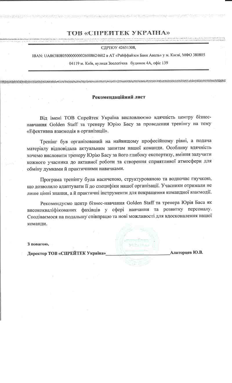 Тренінг був організований на найвищому професійному рівні, а подача матеріалу відповідала актуальним запитам нашої команда. Особливу вдячність хочемо висловити тренеру Юрію Басу за його глибоку експертизу, вміння залучити кожного учасника до активної роботи та створення сприятливої атмосфери для обміну думками й практичними навичками.